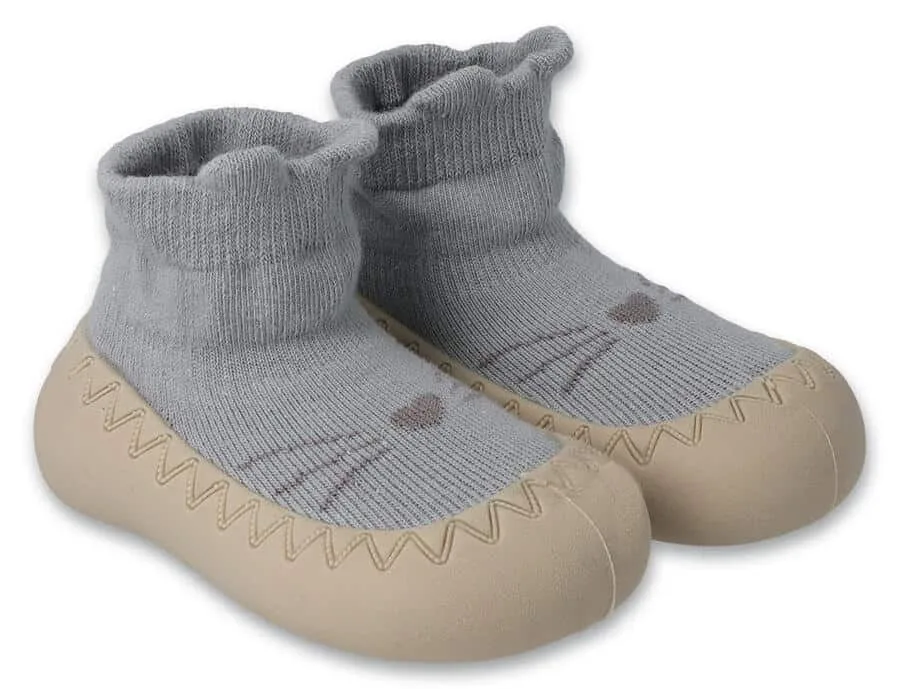 - realizat dintr-un ciorap flexibil si o talpa antiderapanta care nu incarca picioarele copilului