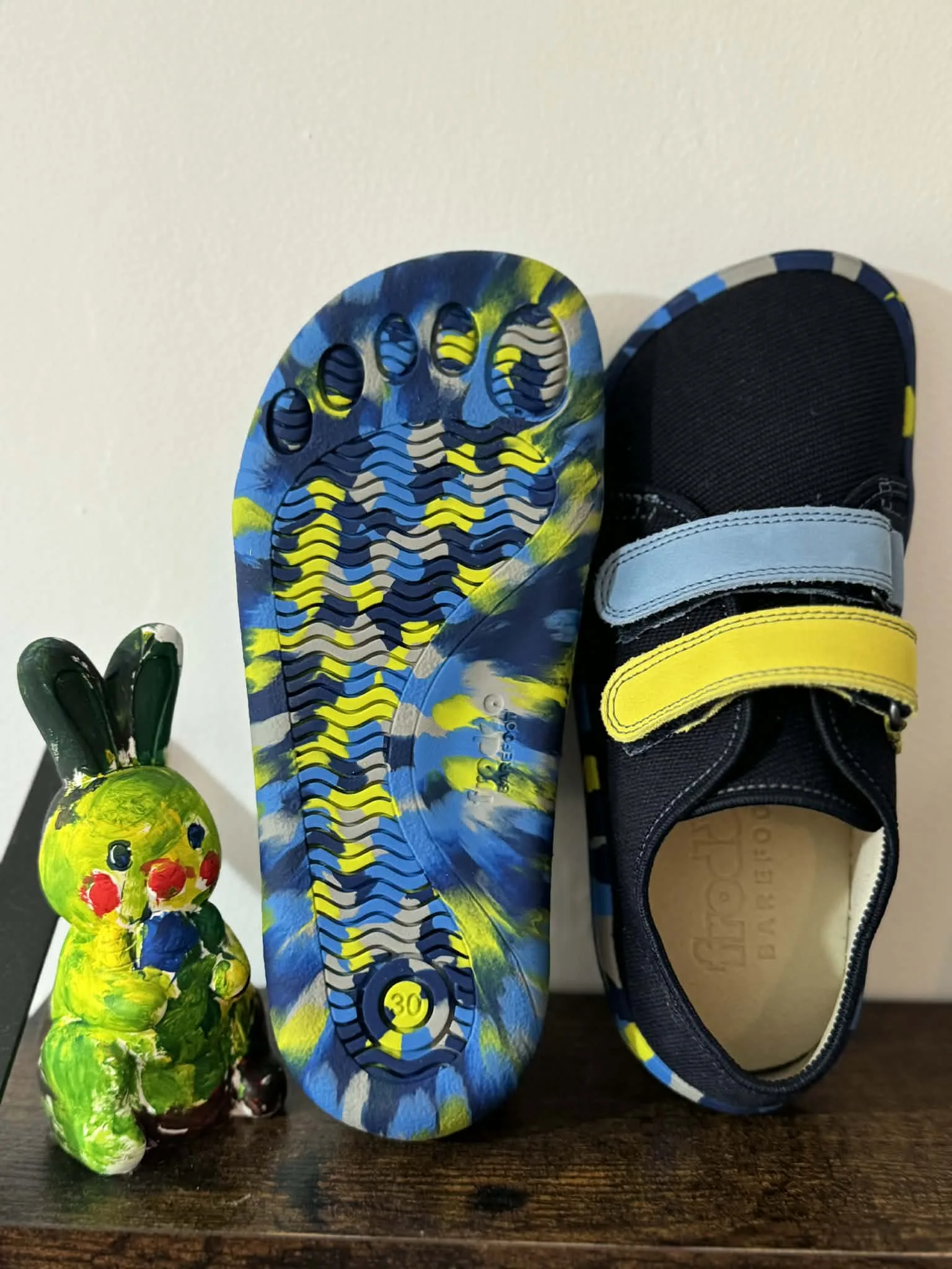 Pantofi extrem de ușori care imită mersul desculț. O zonă mai largă pentru vârfuri asigură stabilitate în timpul mersului. Zero călcâi. Talpă extrem de flexibilă cu aderență suplimentară. Brant interior plat, detașabil, din microfibră antibacteriană. Ultra ușor și respirabil. Fără crom VI.